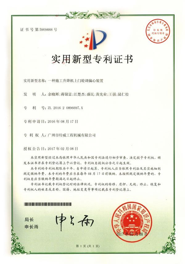 廣州市特威工程機(jī)械有限公司地處廣州市白云區(qū)神山鎮(zhèn),廣清高速神山出口附近,是一家施工升降機(jī)的專業(yè)生產(chǎn)廠家。公司成立于2011年,占地100000多平方米,注冊(cè)資金1060萬元,現(xiàn)有員工300余人其中工程技術(shù)人員33人,高級(jí)技術(shù)人員52人。